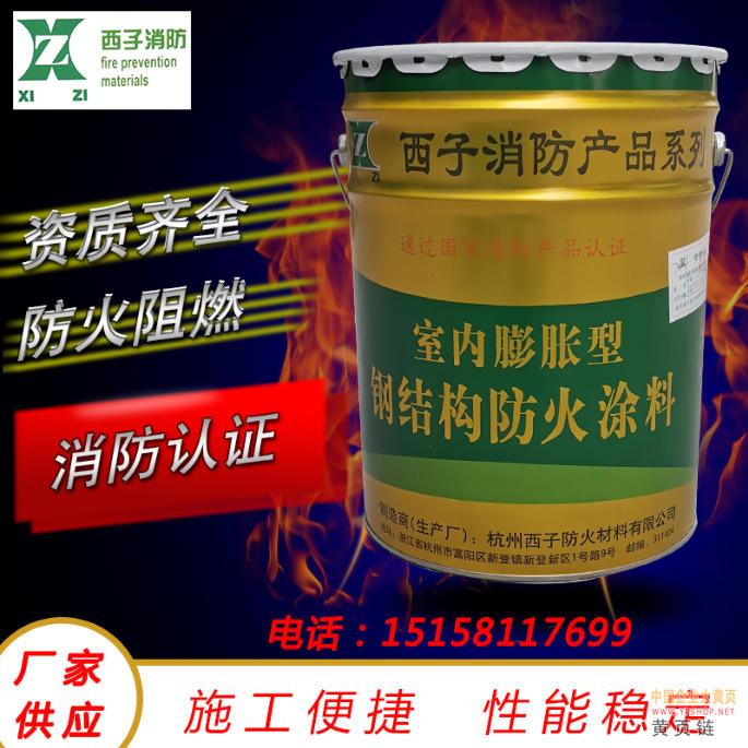 产品名称:杭州西子钢结构防火涂料室内膨胀型薄型防火材料